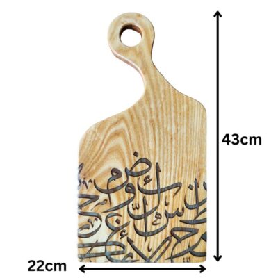 Enhance your kitchen with this stunning 22×43 cm epoxy resin cutting board featuring intricate Arabic calligraphy. Crafted from durable wood and food-safe materials, it combines functionality with artistry, making it both a unique kitchen tool and a beautiful display piece.