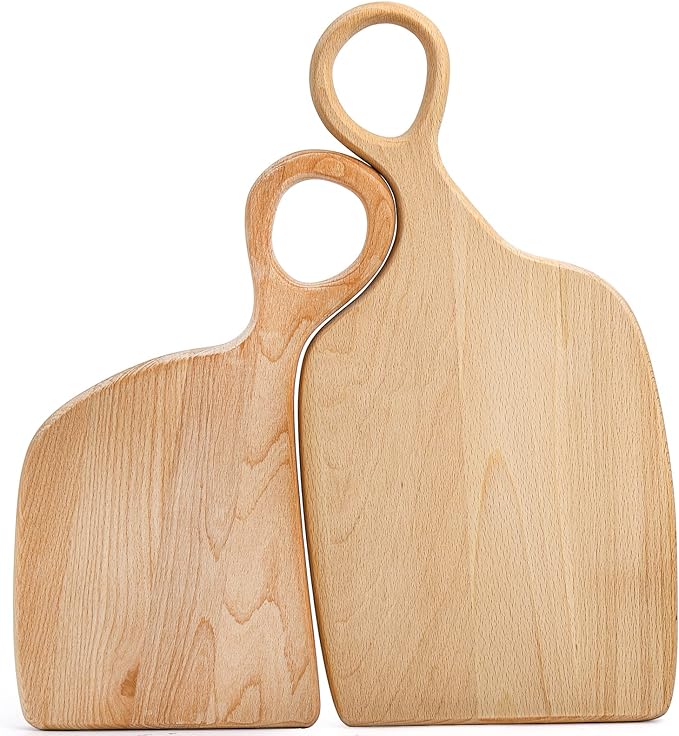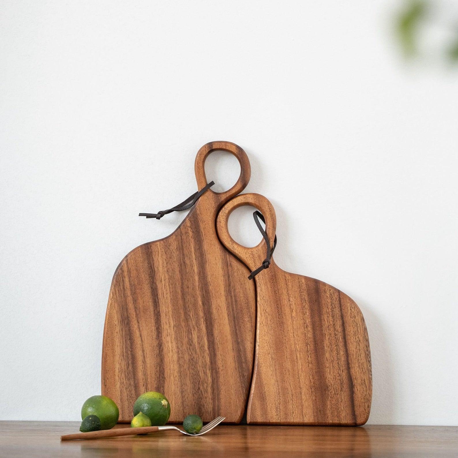 Introducing our 2-piece Nesting Wood Cutting Board Set, designed to add a touch of charm and elegance to your kitchen. This set features two cutting boards crafted in a curving design that resembles a cuddling couple. These cutting boards are handy. They also look great in your kitchen.