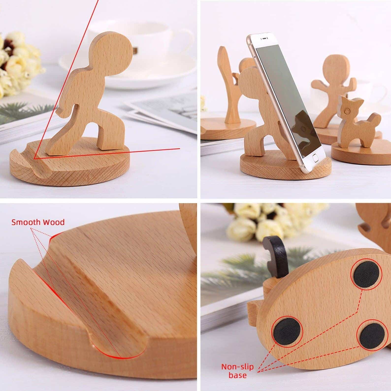 Secure your phone with style! Crafted from durable wood, it fits all sizes and features a fixed design and anti-slip base. Perfect for any setting, especially offices. Add a touch of fun to your space with our charming cartoon design. Order now!